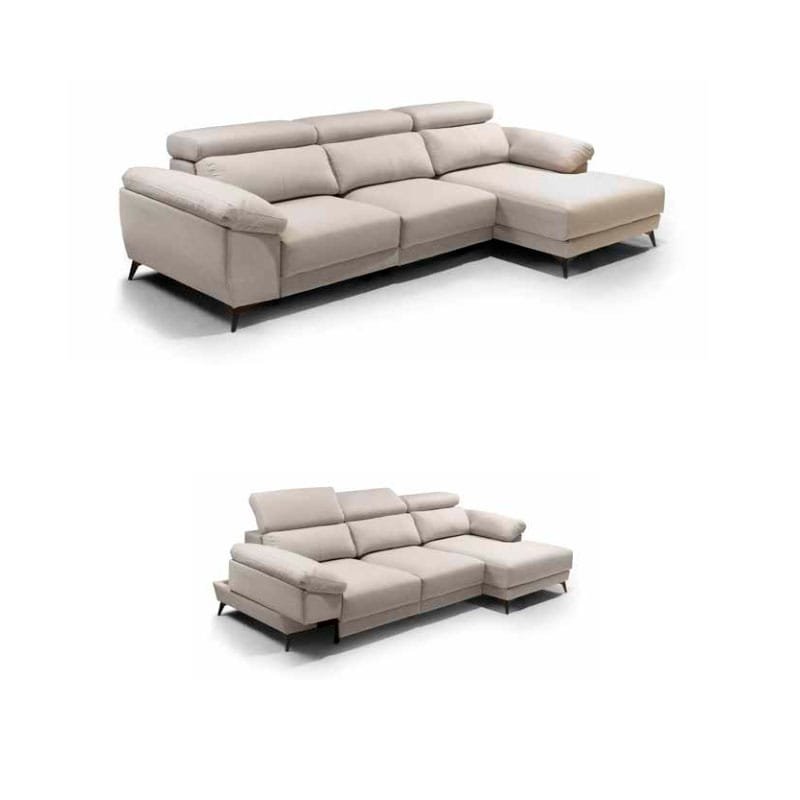 Nuestro chaiselongue CHVIR , tiene una medida de 280×165. Es un sofá elegante y adaptable. Con sus asientos extraíbles de carro, puedes convertirlo en una cama. Sus brazos tipo siesta con arcón, nos dan comodidad y la practicidad de un almacenamiento accesible desde la comodidad del asiento. Es de pata alta, lo que permite el acceso de los robot de limpieza.
