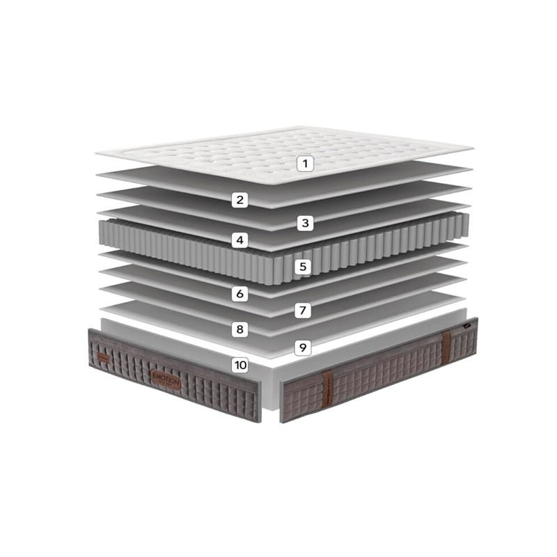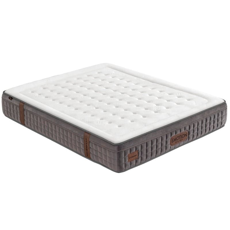 Nuestro colchón Emotion está recomendado para personas de tamaño XL, gracias a su núcleo de muelles ensacados de alta resistencia. Posee un alto nivel de firmeza y transpirabilidad que lo hacen ideal para personas calurosas. Además posee la justa combinación entre firmeza y adaptación para proporcionarle un alto nivel de confort. Emotion fue elegido como el mejor colchón del 2022 según la prestigiosa publicación EMC.